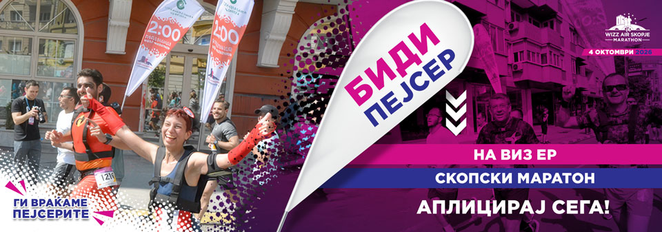 Виз Ер Скопски маратон 2026 (4 октомври) отвора повик за пејсери за маратонската трка. Пејсерите имаат клучна улога во трката – да им помогнат на учесниците да го одржат посакуваното темпо и да го постигнат своето таргет време.